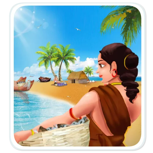 An illustration showing children riding a bullock cart through green Tamil fields, representing Playwithtamil’s cultural connection to Tamil heritage and learning.